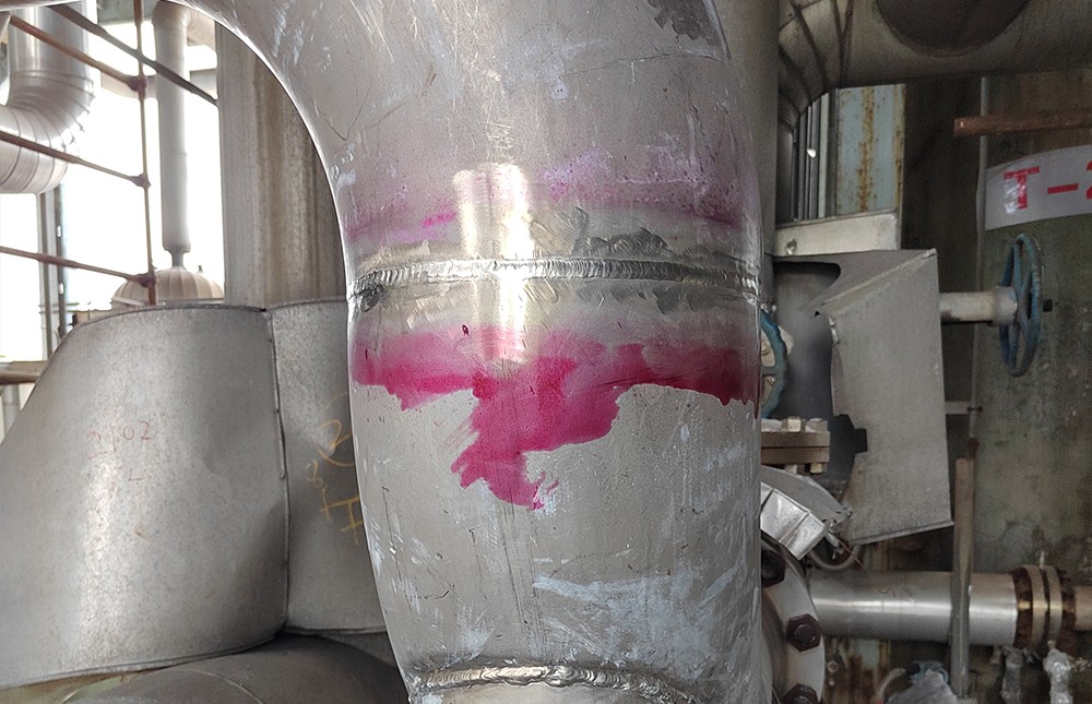 某化工廠管道定檢滲透檢測