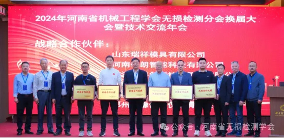 會上還對長期以來大力支持河南省無損檢測事業的單位進行了表彰,榮獲河南省無損檢測分會‘戰略合作伙伴’的企業有:濟寧魯科檢測器材有限公司、河南德朗智能科技有限公司、武漢中科創新技術股份有限公司、汕頭市超聲儀器研究所股份有限公司、山東瑞祥模具有限公司、鄭州蘇豫儀器儀表有限公司。