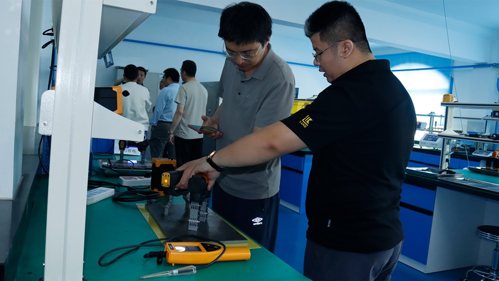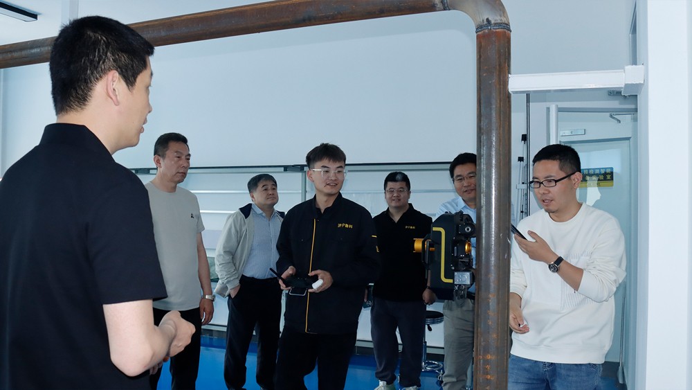 專家組一行參觀了我公司埋地管道實訓基地、無塵車間、研發中心實驗室等,對我公司自主研發的無線式磁粉探傷儀、管道磁粉探傷儀、角焊縫磁粉探傷儀、腐蝕測厚機器人、ACFM交流電磁場檢測儀等設備進行性能測試,均達到預期效果,對我公司研發、生產及售后能力給予高度評價。