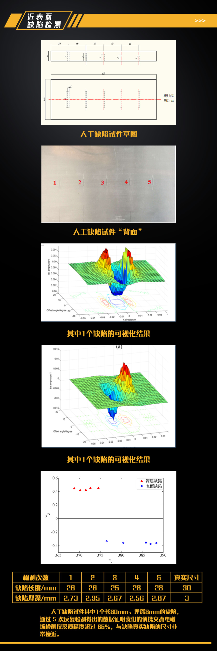 檢測缺陷大小:長≥3mm、深≥0.5mm(蝶形圖)、≥0.3mm(梯度圖);