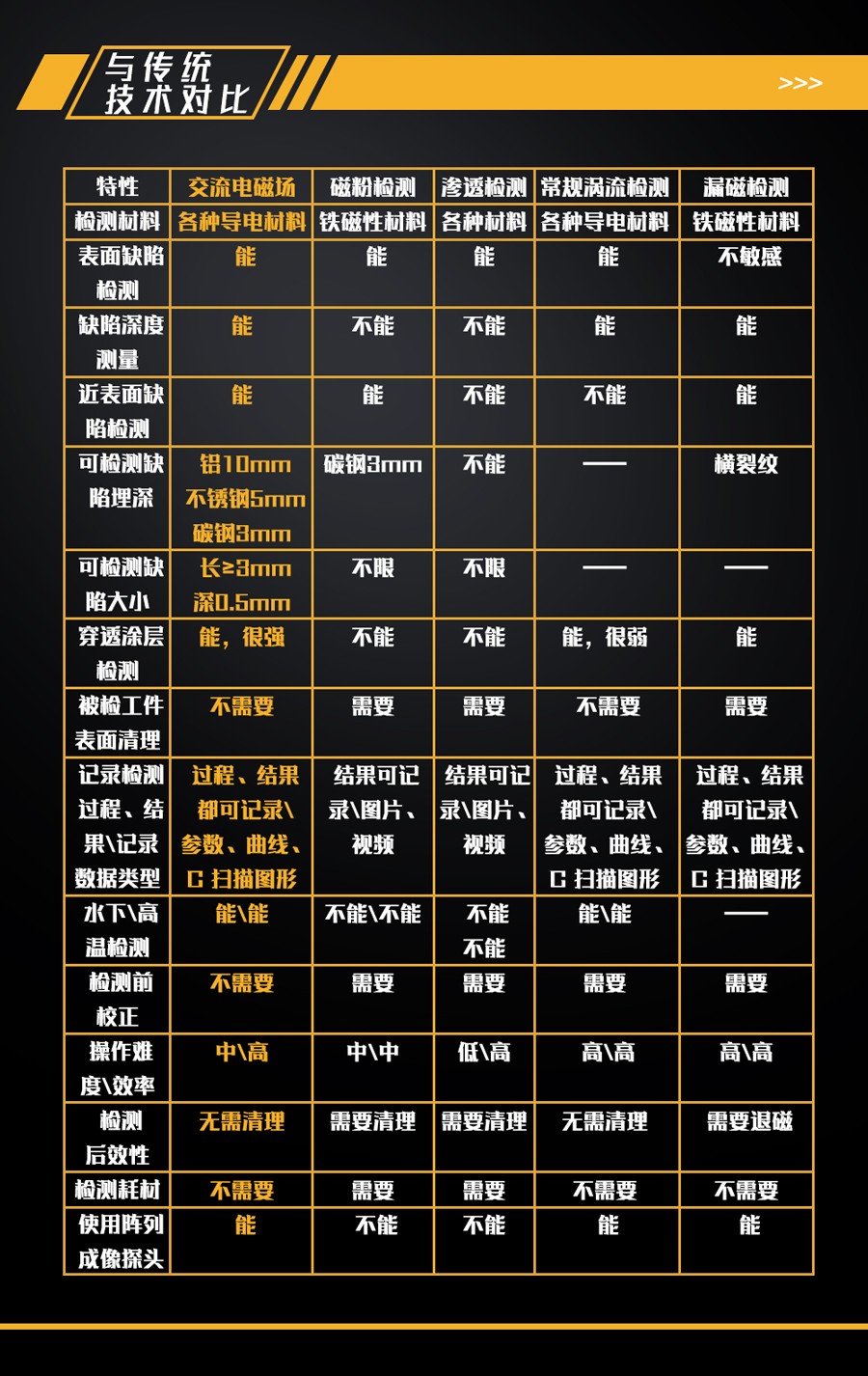 1、交流電磁場檢測技術適用各種導電體材料,主要用于鐵磁性或非鐵磁性材料對于表面或近表面的缺陷可以快速準確的檢出;