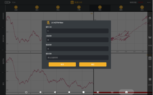 點擊報告按鈕,彈窗輸入操作人員、工程名稱、管道名稱和報告名稱,點擊確定即可根據(jù)配置信息和檢測數(shù)據(jù)生成報告,并將報告保存到設(shè)備本地文件夾。