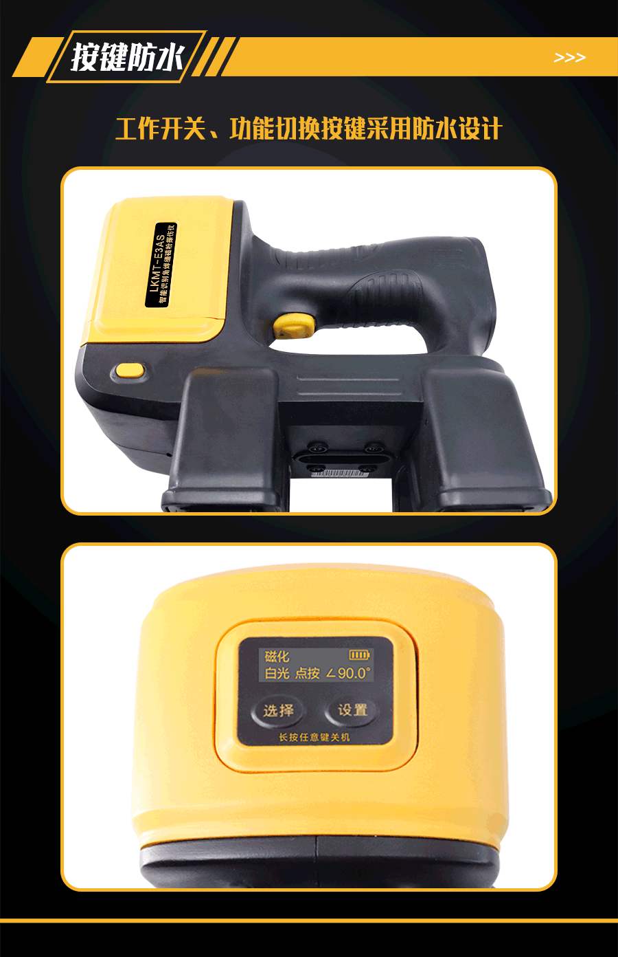 1、LKMT-E3AS一體式旋轉(zhuǎn)磁場(chǎng)角焊縫磁粉探傷儀,探頭與鋰電池一體式設(shè)計(jì),無需使用線鏈接;